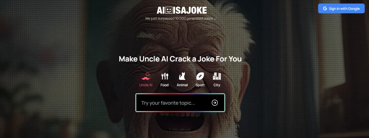 FreeAI Is A Joke allows users to generate custom punchlines tailored to specific topics and humor genres. By providing a subject and selecting a style such as food puns or self-deprecating humor, users can receive personalized jokes that are guaranteed to amuse. The tool continuously improves its humor output through user ratings and feedback, ensuring that the generated punchlines become increasingly relevant and funny over time. AI Is A Joke offers endless comedic possibilities, turning any subject into a source of laughter. Whether you want jokes related to your hometown, occupation, or hobbies, this AI-driven platform serves as your personal comedy writer, bringing joy through humor. Experience the future of comedy with AI Is A Joke and discover how AI can enhance our human capacity for laughter.