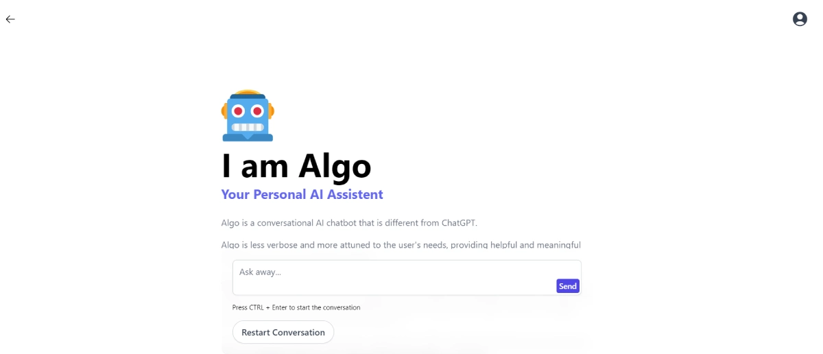 PaidAlgo is a conversational AI chatbot developed by ChatBotKit. It stands out for its concise and responsive interactions, providing meaningful conversations without unnecessary verbosity. This AI assistant emphasizes user privacy and security, ensuring all communications are confidential. Users also have the option to delete their data at any time.