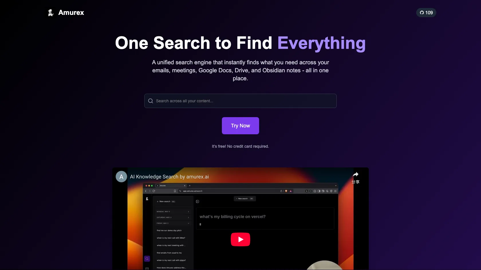 FreeDiscover a comprehensive search engine that seamlessly locates information from various platforms like emails, meetings, documents, and notes, all in a single interface. This tool is free to use, with no need for credit card details, and prioritizes transparency through its open-source design.