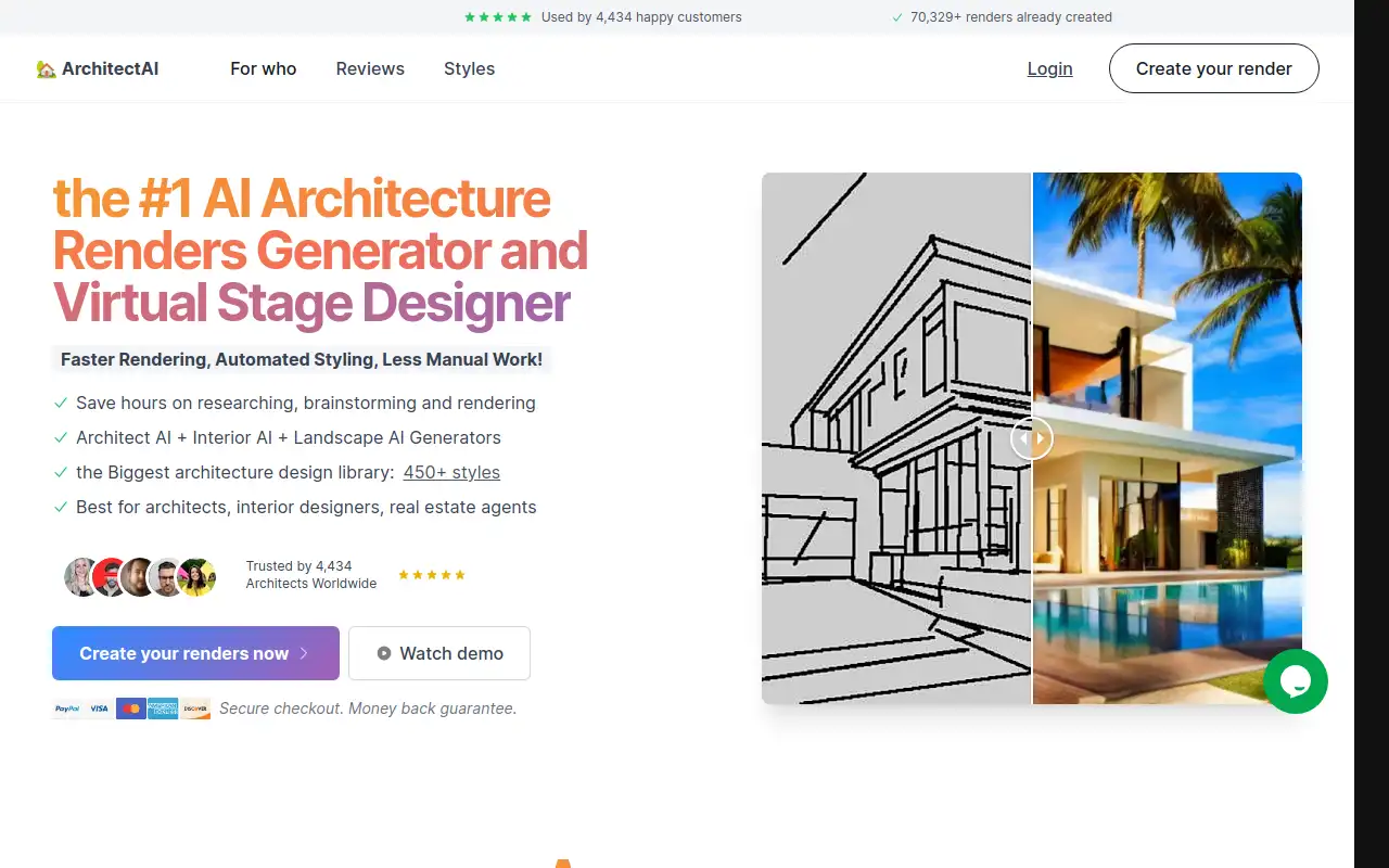 PaidArchitect AI enables architects, interior designers, and real estate enthusiasts to generate AI architecture renders and design virtual stages efficiently. This tool combines architecture, interior design, and landscape AI generators to bring design visions to life. With access to over 450 architecture design styles, users can create ultra-realistic interior AI renderings and diverse landscape designs. Architect AI also offers an AI virtual stage designer for property showcasing and a feature for designing superyacht interiors. By utilizing powerful AI algorithms, users can explore numerous design variations quickly, saving time and exceeding client expectations.