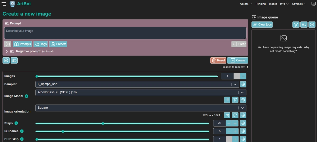 FreeArtBot is a free AI-powered platform that lets users create images using Stable Diffusion, a machine learning model for generating art. It runs on the AI Horde, a network of distributed GPUs, to offer a reliable and open-source environment for making generative art. With ArtBot, you can dive into AI-generated artwork without the need for registration, making it user-friendly for beginners and enthusiasts alike. This tool provides an accessible entry point for exploring the world of AI-generated art.