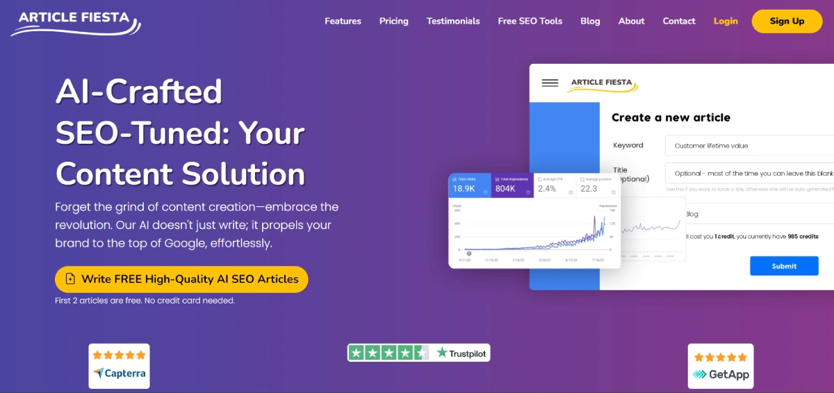 PaidArticle Fiesta is an AI writing platform that simplifies content creation and enhances SEO performance. By leveraging advanced language models and optimization tools, users can quickly produce high-quality articles. Ideal for websites, agencies, and content creators, Article Fiesta streamlines article production with scalable monthly plans tailored to different needs. A free 5-article trial allows users to experience its capabilities firsthand. This tool offers a seamless solution for generating SEO content efficiently at scale. With features like direct publishing, internal linking, and schema enhancements, Article Fiesta optimizes on-page content. Its bulk creation capabilities and cost-effective pricing help websites and creators enhance their content strategy effectively.