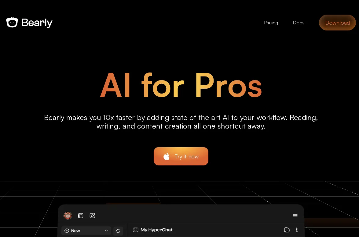 PaidBearly is an AI assistant designed to enhance productivity for professionals. This tool offers features like document interaction, content creation, transcript generation, and more. With HyperChat, users can ask questions and analyze documents hands-free. Bearly enables the conversion of audio/video files to text transcripts through Transcriptions. It also provides enhanced search capabilities via Google integration with Web access. Meeting minutes are automatically generated with key takeaways. Users can access over 50 templates for reading, writing, and other tasks in the prompt marketplace. Bearly prioritizes security and offers top AI models like OpenAI and Anthropic. Available on Mac, Windows, iOS, Linux, and as a Chrome extension, Bearly provides AI superpowers across various devices.