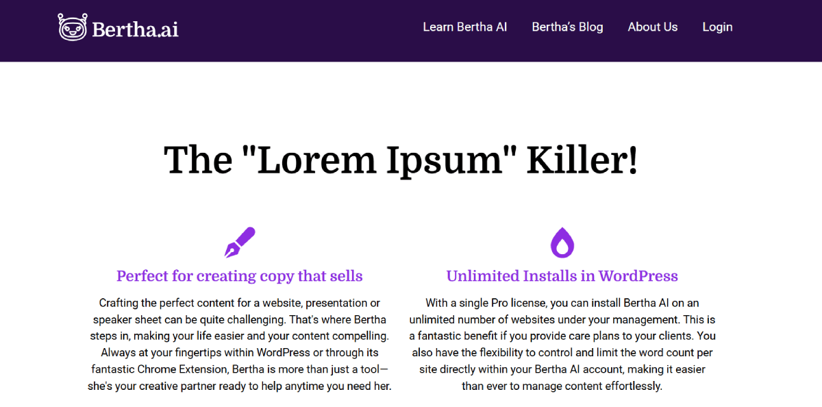 PaidBertha AI enables users to effortlessly create content for websites and presentations using AI-driven writing tools and image generation features. It streamlines content creation for various platforms by integrating easily with WordPress and a Chrome extension. Bertha AI's unique blend of AI technology, templates, and prompts assists in crafting sales copy, product descriptions, blog posts, and more. Professionals at all levels can benefit from this tool to enhance productivity, streamline content creation processes, and focus on editing rather than starting from scratch.
