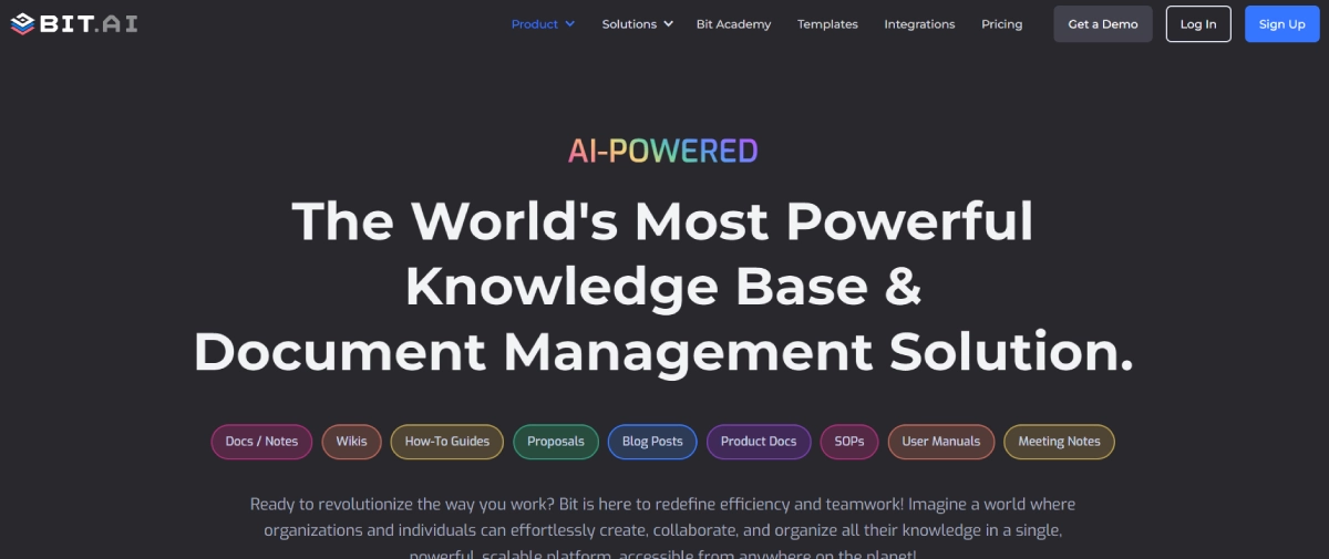 PaidBit AI is a versatile tool designed for creating and organizing documents and wikis. It acts as a reliable knowledge base and document management system, fostering improved team collaboration and productivity. It caters to businesses, educators, and individuals alike. Key features include intuitive document and wiki creation, real-time collaboration capabilities, and an AI-powered writing assistant. Bit AI offers different plans: a free option, a Pro Plan at $12 per member per month, and a Business Plan at $20 per member per month.