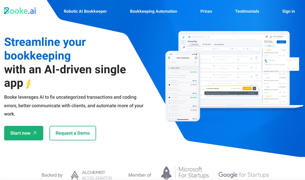 PaidBooke AI is an accounting platform that uses artificial intelligence to automate bookkeeping tasks for accounting professionals and small businesses. It simplifies processes like transaction categorization, data extraction, client collaboration, and error detection. By employing advanced AI and machine learning, Booke AI streamlines tedious bookkeeping duties, offering key benefits to bookkeepers and small business owners across various industries such as retail, healthcare, real estate, legal, and construction. This tool is ideal for those handling high volumes of financial transactions, helping eliminate repetitive accounting tasks. Booke AI empowers users to boost productivity, gain valuable insights, and concentrate on strategic business goals.