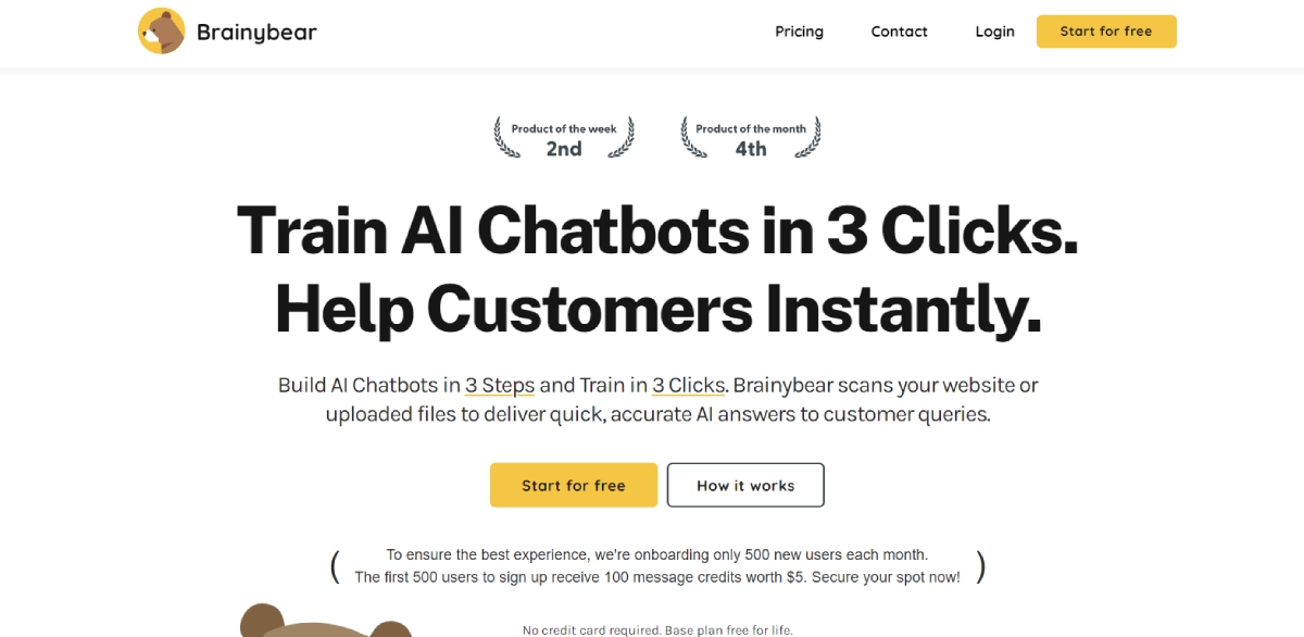 PaidBrainyBear is an AI chatbot platform designed to help businesses easily create and train AI chatbots in three simple steps. By analyzing website content or uploaded files, BrainyBear provides accurate responses to customer queries swiftly. This tool is ideal for companies seeking a fast, efficient, and scalable way to improve customer support and engagement. BrainyBear enables businesses to develop chatbots that mimic human responses, enhancing customer interactions without complex setups. It is particularly beneficial for businesses needing rapid, scalable customer service or conversational interfaces across various languages and platforms. BrainyBear's user-friendly interface allows businesses to deploy AI chatbots quickly, automating up to 80% of customer inquiries with personalized responses. Small to medium-sized businesses looking for a versatile, multilingual AI assistant that integrates easily with popular messaging apps will find BrainyBear beneficial.