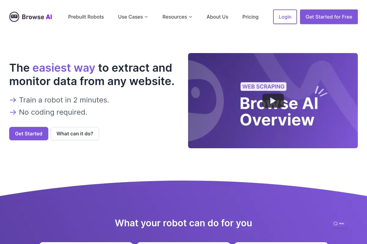 PaidBrowse AI is a web data extraction platform that lets you create automated scrapers without needing to code. Using advanced AI technology, Browse AI can pull out particular information from websites and transform it into useful data. With this tool, users can easily gather data from the web without having to write complex scripts or programs. This means you can extract the specific data you need from various websites quickly and efficiently. By automating the scraping process, Browse AI saves you time and effort, allowing you to focus on using the extracted data for your projects or analysis.