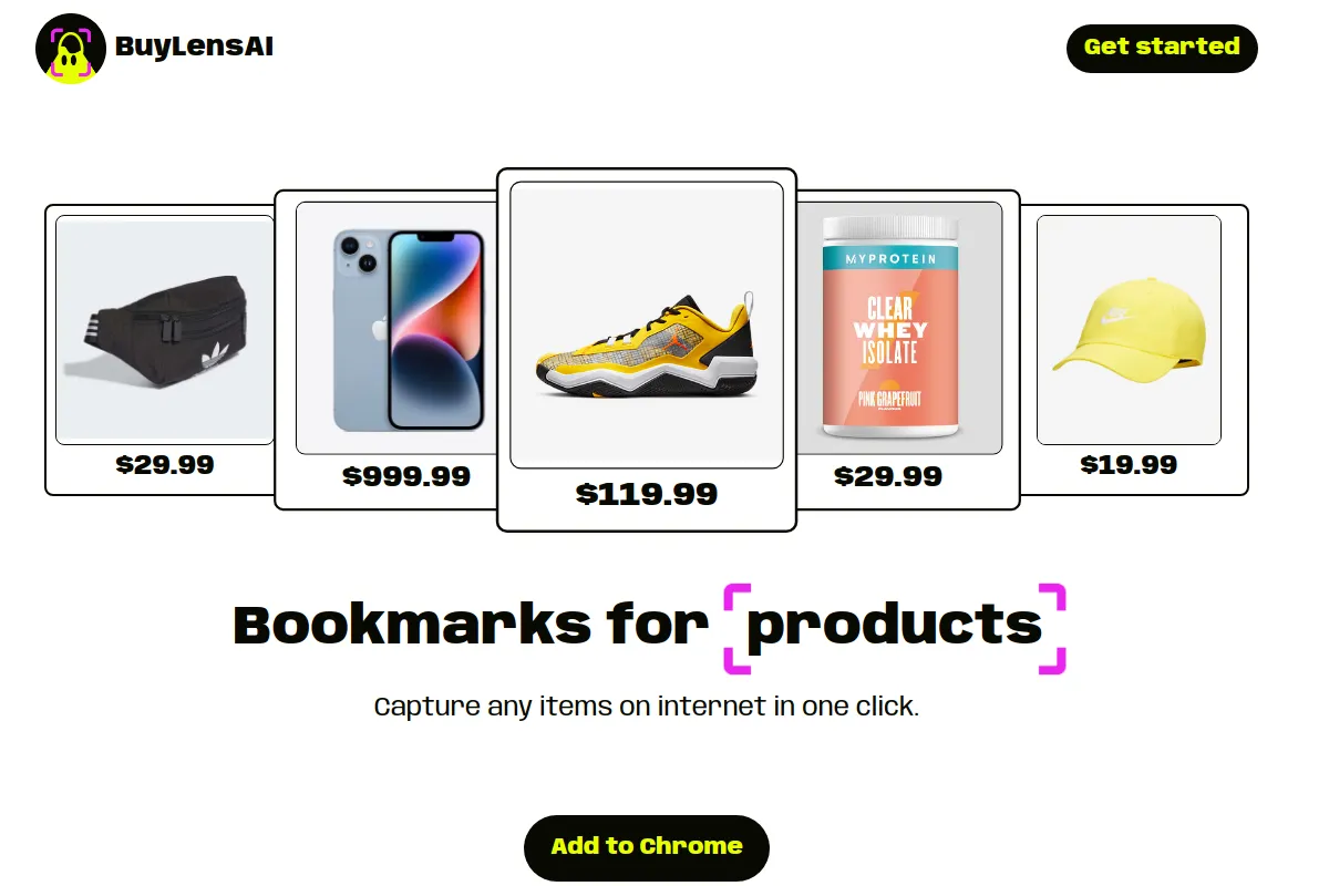 PaidBuylens AI is a smart browser extension that helps online shoppers easily save and organize products found across various websites for future reference and purchase consideration. With Buylens AI, users can effortlessly keep track of items they are interested in buying later. By consolidating product discoveries in one place, this extension simplifies the shopping process. It works across different ecommerce categories and is compatible with all major browsers and ecommerce sites. Using AI technology, Buylens AI enhances the browsing experience by providing a convenient way to save and revisit items of interest quickly and efficiently.