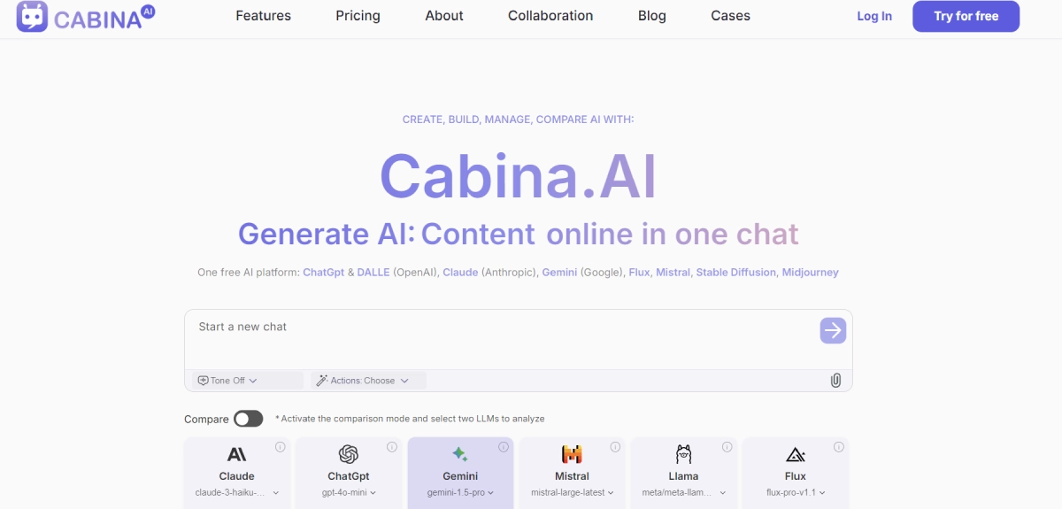 PaidCabina AI is a platform that combines various AI models such as ChatGPT, DALL·E, Claude, and more to help users create content efficiently. By using this tool, users can easily compare outputs from different models in one place, making it quicker to find the best solution for their needs. Cabina AI is especially useful for businesses, content creators, and individuals who want to enhance their productivity and creativity. With Cabina AI, users can streamline their content creation process and access a range of AI models in a single platform, simplifying the content generation experience.