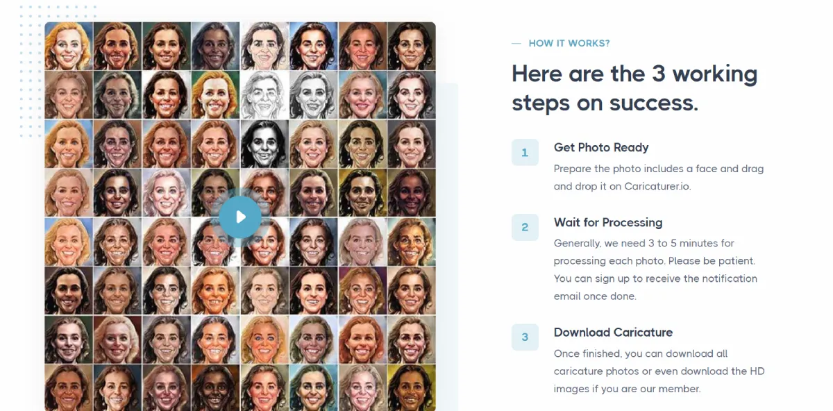 FreeCaricaturer.io enables users to effortlessly create caricature portraits from photos using advanced AI technology. By leveraging computer vision and generative adversarial networks, the platform transforms portraits into exaggerated illustrations brimming with character. With photorealistic effects like oversized noses and miniaturized mouths, users can achieve vivid and comedic results in seconds. Caricaturer.io offers limitless creative possibilities, allowing users to apply various effects to photos of themselves, loved ones, or celebrities with ease. This tool makes professional-grade caricature design accessible to all, eliminating artistic boundaries and spreading smiles through ethical AI. Whether you want to add a fun twist to selfies or profile pictures, Caricaturer.io is your go-to platform for unleashing your creativity.