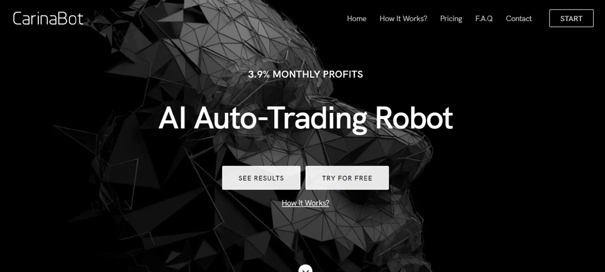 PaidCarinaBot is an automated trading robot powered by artificial intelligence, designed to analyze market trends and execute trades for users. Specifically tailored for the EUR/USD currency pair, CarinaBot uses triangular-modelling algorithms to forecast price movements and seize profitable opportunities. This platform caters to both novice and experienced traders, offering a hands-free trading experience with the potential for steady monthly returns. With CarinaBot, users can explore automated AI trading effortlessly through a user-friendly interface that requires no specialized skills. Users can test the demo or live version for three months at no cost. Notably, users only incur a fee if CarinaBot generates profits, with a 10% share of the earnings.