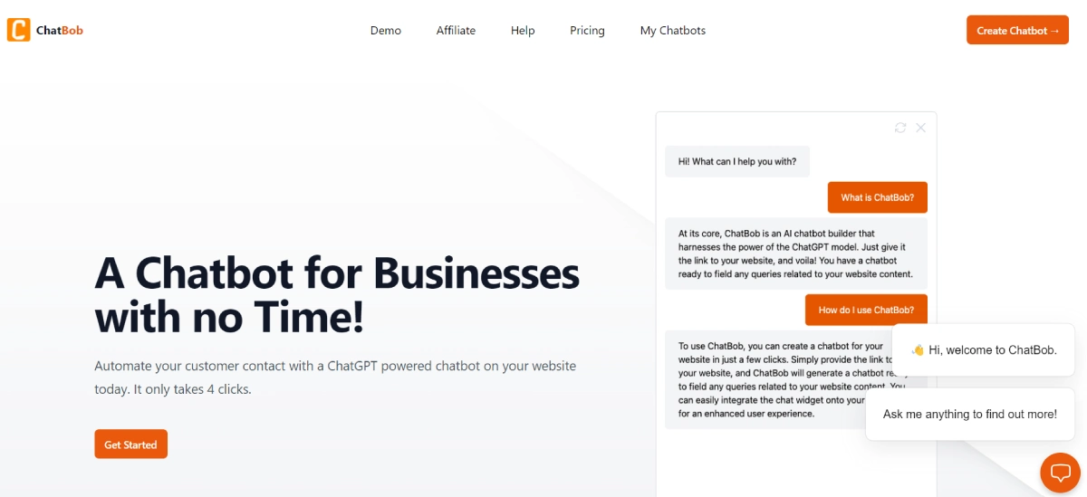 PaidChatBob is an AI-powered chatbot that automates customer interactions on websites. It offers a multilingual chat service supporting over 95 languages, making it ideal for businesses with a global audience. Setting up ChatBob is quick and easy - simply add a URL and a name. The tool then crawls your content to create a customized chatbot for your site. This chatbot can be embedded on your website to provide immediate support to visitors. ChatBob offers various pricing plans to meet different business needs.