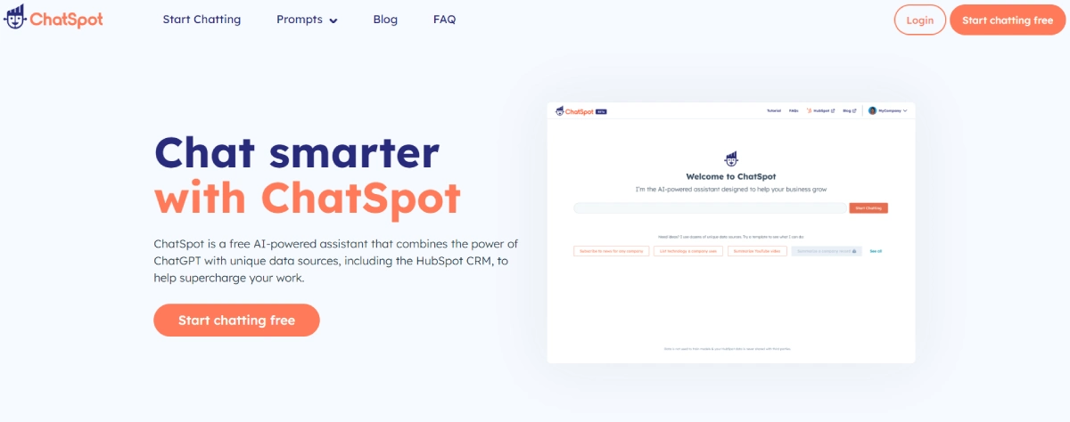 FreeChatspot AI is an AI tool that easily integrates with HubSpot CRM to boost marketing and sales activities. It uses ChatGPT and unique data sources to provide personalized responses, valuable insights, and real-time access to business data. This tool is great for speeding up sales prospecting, creating content, and analyzing company data. Chatspot AI is currently free for all users, making it a cost-effective option for businesses aiming to improve their marketing and sales strategies without extra expenses.