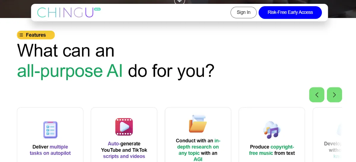 PaidChingu Fun is an all-in-one AI assistant designed to streamline work processes and boost creativity. This versatile tool acts as your personal researcher, marketer, developer, and content creator, consolidating multiple tasks into one powerful platform. By automating time-consuming tasks like generating YouTube scripts, TikTok videos, blogs, apps, and music from simple text prompts, Chingu enables users to produce content and bring ideas to life 10 times faster. Additionally, Chingu provides in-depth research summaries for projects, offers creative tools for artists, musicians, and writers, and condenses the roles of a marketing team, research assistant, coder, and content agency into one intuitive platform. Ideal for students, freelancers, marketers, entrepreneurs, and creators, Chingu Fun enhances productivity across various fields.