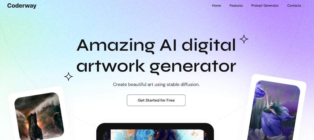 PaidCoderway is an AI art platform that uses AI and Stable Diffusion to turn your ideas into digital artworks. With Coderway, you can create stunning and realistic art by entering text prompts. This AI-powered tool transforms your imagination into visual masterpieces, making it easy for you to unleash your creativity. By harnessing the latest advancements in diffusion models, Coderway revolutionizes the way you experience and create art. With Coderway, you can generate beautiful digital artworks effortlessly, bringing your ideas to life in a whole new way.