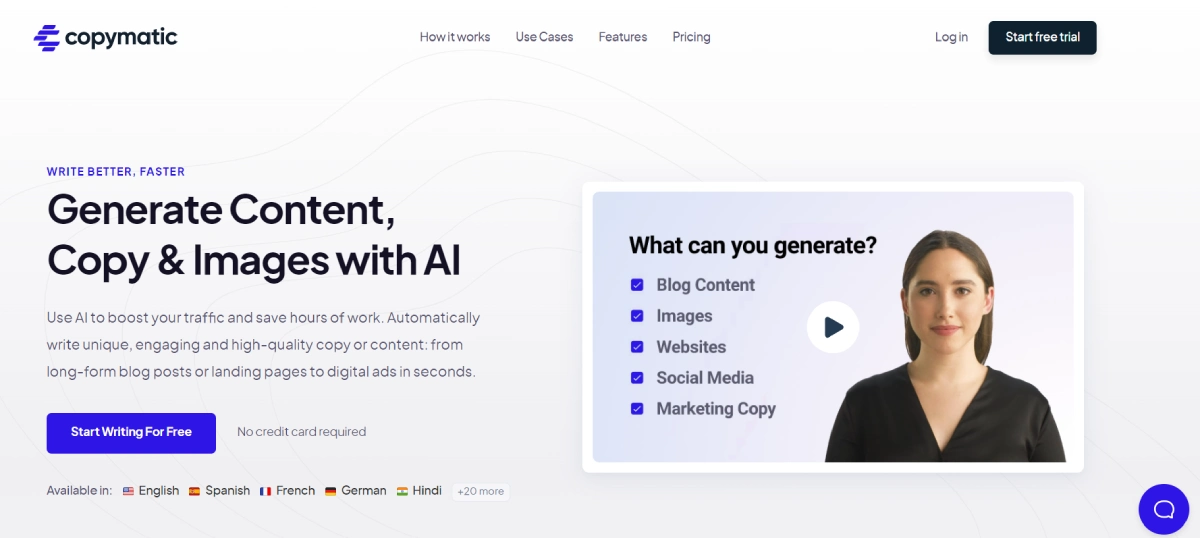 PaidCopymatic is an AI-powered content creation platform that helps businesses, marketers, and content creators produce high-quality, engaging, and unique content quickly. By utilizing advanced AI language models and a variety of writing tools, Copymatic enables users to enhance their writing efficiency. It offers flexible pricing plans based on the number of words generated monthly, starting at $29 for the Pro plan with unlimited words and access to all tools. The Team and Enterprise plans cater to larger groups with multiple user seats. Copymatic streamlines the content creation process, allowing users to write better and faster.