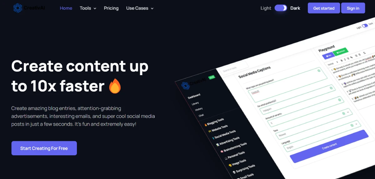 PaidCreativAI is a writing and idea generation platform powered by artificial intelligence. It helps users produce blog posts, emails, social media content, and more at a significantly faster rate. By enhancing human creativity, CreativAI enables individuals and teams to create abundant and engaging content to drive business growth. Whether you need to improve your website, run ad campaigns, or share updates, CreativAI streamlines the process of generating important content.