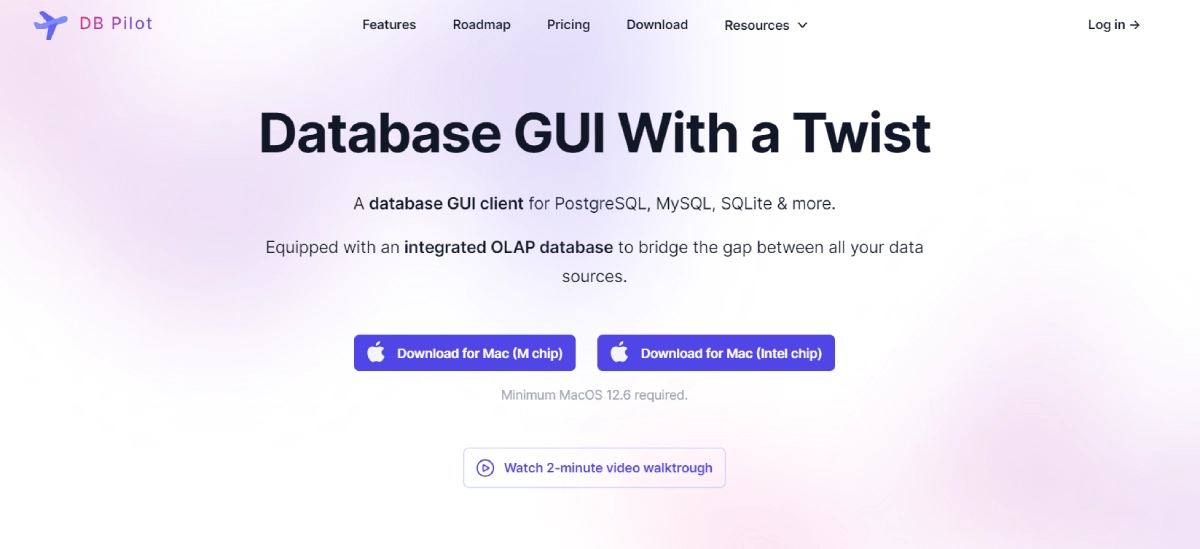 PaidDB Pilot is a database GUI client that simplifies database management by providing a code-free visual interface for databases like PostgreSQL and MySQL. It includes an OLAP database to combine data from various sources easily. The tool offers a personal SQL assistant powered by AI to help with query writing and explanation in natural language. DB Pilot has free and paid plans, with the paid plans offering advanced AI assistants. The visual editor allows for easy management of database rows, while the integrated OLAP database facilitates consolidated analytics by unifying distributed data sources. Overall, DB Pilot streamlines data workflows by providing a unified platform for database tasks.
