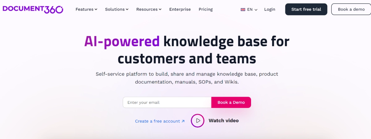 PaidDocument360 is a platform that enables businesses to efficiently create, share, and manage knowledge bases, product documentation, manuals, SOPs, and wikis. It provides a user-friendly interface with advanced search capabilities, rich analytics, and AI-powered suggestions to streamline documentation tasks. Ideal for technical writers, product owners, customer support teams, and developers, Document360 enhances documentation processes for improved workflows and better self-service support. With various pricing plans available, businesses can choose the option that best suits their needs.