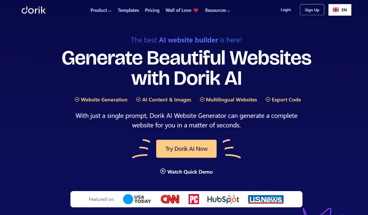 Design, develop, and deploy with precision using Dorik AI's website generation