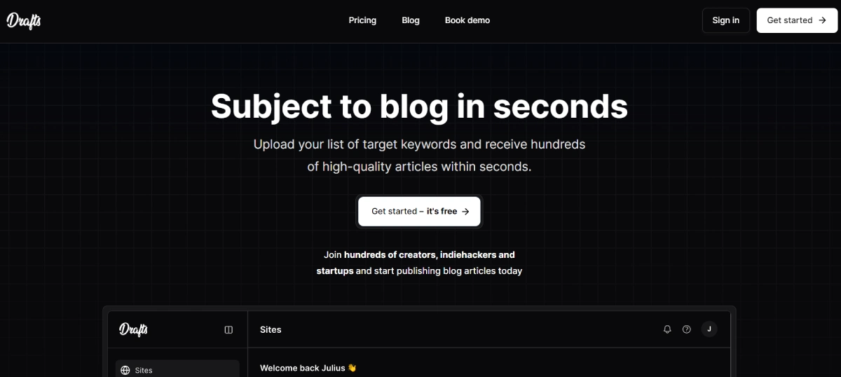 PaidDrafts AI streamlines the creation of high-quality, SEO-friendly content in bulk for creators, startups, and businesses. With this platform, you can effortlessly transform your ideas into blog articles within seconds. It supports over 100 languages and easily integrates with top blog providers. By using Drafts AI, you can enhance your content creation process significantly, saving time and effort while ensuring the quality and SEO optimization of your content. This tool empowers users to efficiently generate a large volume of engaging content for their blogs, helping them reach a broader audience and achieve their content marketing goals effectively.