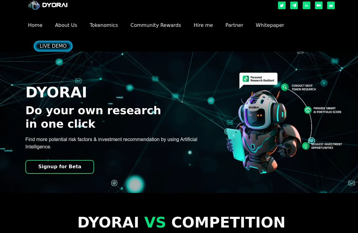 FreeDYORAI is an AI platform designed to streamline cryptocurrency research for investors. By automating research processes, it helps users save time and minimize risks associated with investment decisions. The platform offers AI-driven tools that provide valuable insights to investors, making the research process faster and more informative. Users can benefit from early access to DYORAI's beta version by signing up on their website. Additionally, developers can access the platform through an API. Overall, DYORAI's use of AI technology aims to simplify crypto research, enabling investors to make more informed decisions efficiently.