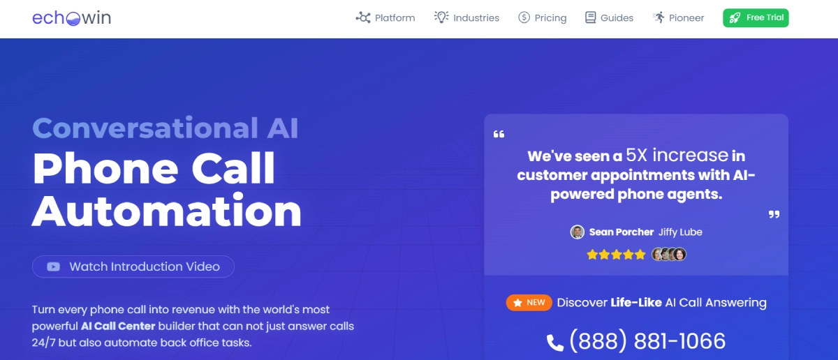 PaidEchowin is an advanced AI call answering and workflow automation platform that revolutionizes how businesses handle incoming calls. By automating call management, Echowin ensures efficient handling of phone inquiries while easily integrating with various back-office tasks. This integration boosts customer service quality and operational efficiency, benefiting businesses of all sizes. With Echowin, companies can streamline their call management processes and elevate customer interactions to new levels. Whether you're a small startup or a large corporation, Echowin offers a solution to optimize your call handling procedures and enhance overall customer satisfaction. Say goodbye to manual call management hassles and hello to a more streamlined and effective approach with Echowin.