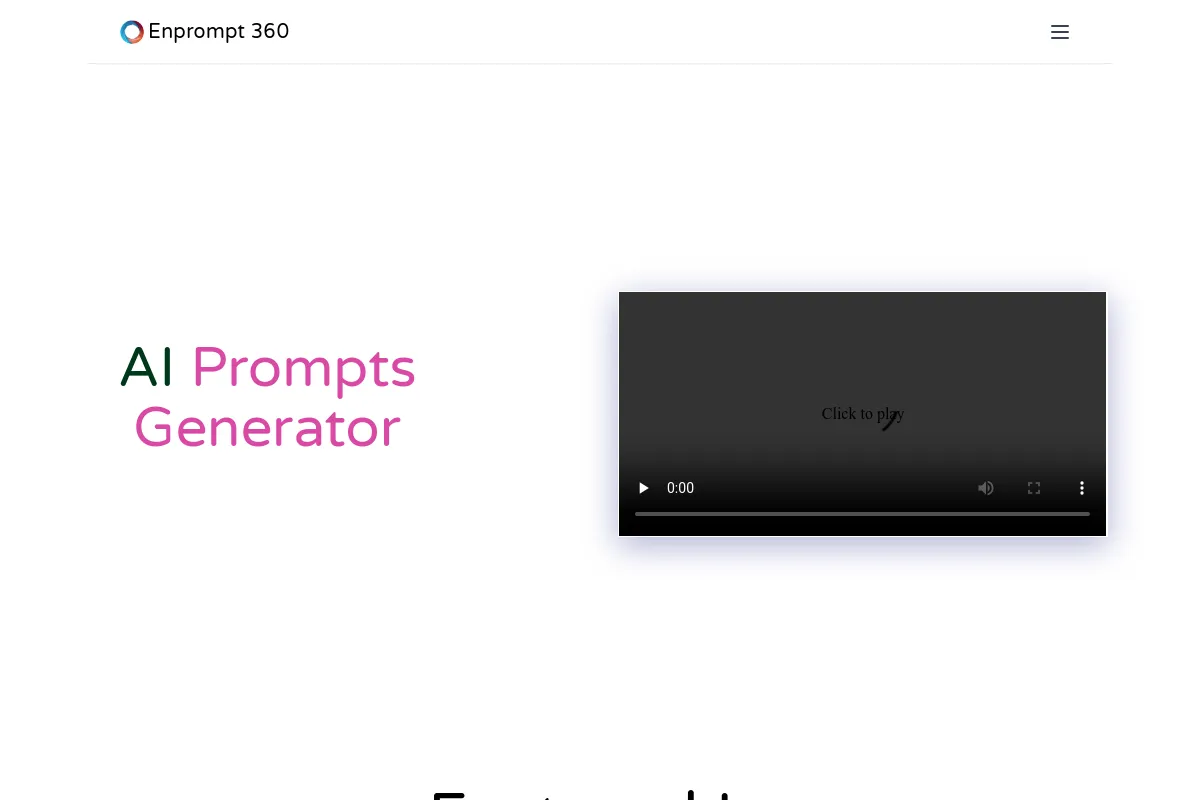 FreeEnPrompt360 helps streamline AI interactions by generating concise prompts in just three words. This tool revolutionizes how individuals and businesses engage with AI systems and language models. By simplifying the process of creating prompts, EnPrompt360 enhances the efficiency and effectiveness of AI chat interactions. Its advanced capabilities and user-friendly interface make it a pioneering solution in prompt generation for AI. With EnPrompt360, users can easily optimize their interactions with AI, unlocking the full potential of these technologies for various applications.