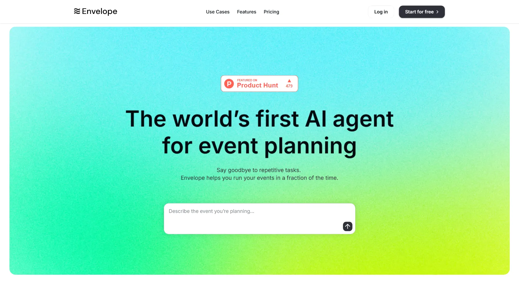 Envelope simplifies event planning by allowing users to input prompts to create event pages, manage guest data, send branded emails, and track analytics. It automates tasks such as RSVP confirmations and registration flows, streamlining the planning process for organizers.