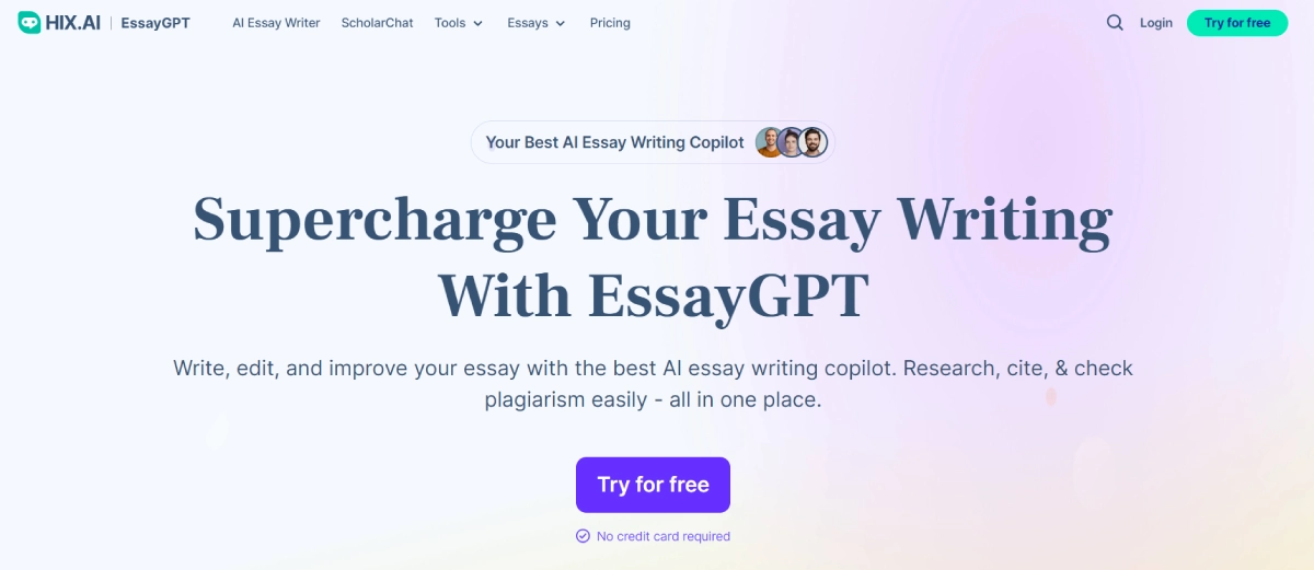PaidEssayGPT By Hix is an AI essay writing assistant that simplifies the academic essay writing process. It uses advanced natural language processing and specialized tools to help students and researchers from brainstorming to final submission. Acting as a knowledgeable guide, EssayGPT ensures essays meet academic standards and formatting requirements. By leveraging its AI engine and vast knowledge base, users can create high-quality, well-researched essays more efficiently.