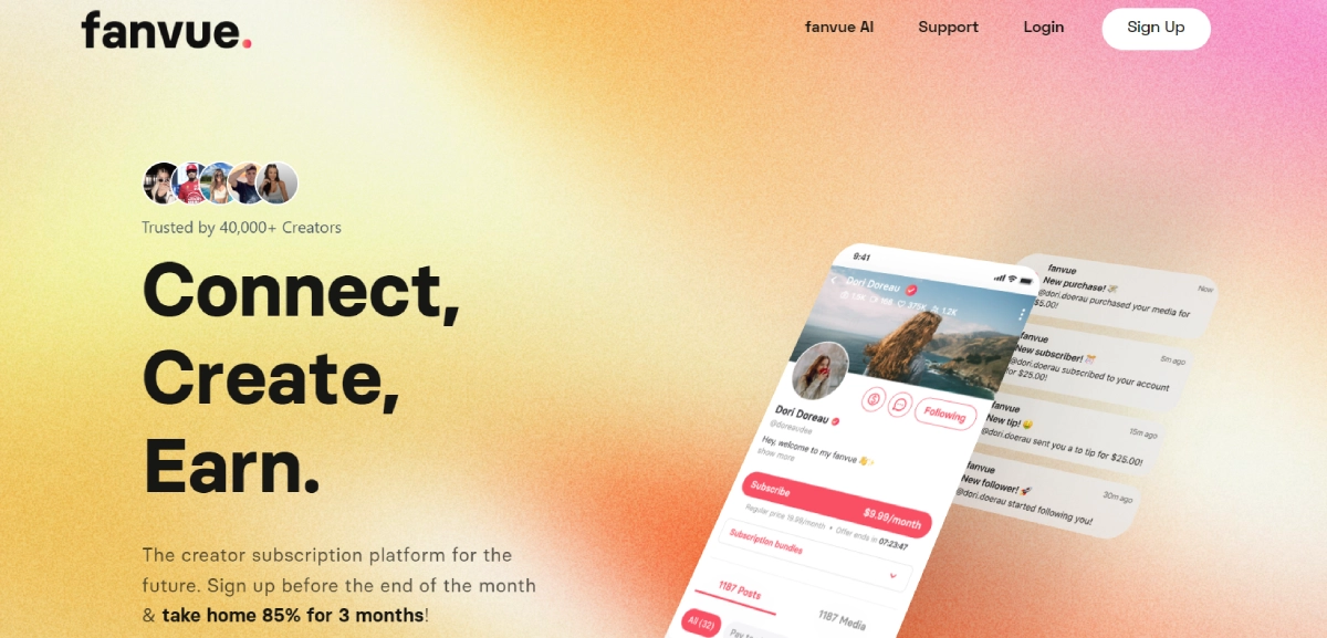 FreeFanvue is a subscription platform that enables creators to monetize their content and engage with fans using AI messaging and analytics. Creators can join for free and earn 85% of revenue, with only a 15% platform fee. By leveraging AI tools, Fanvue empowers creators to monetize their content, build their audience, and enhance engagement. This platform provides a pathway for creators to establish a sustainable income stream by utilizing advanced technologies to maximize their reach and impact.