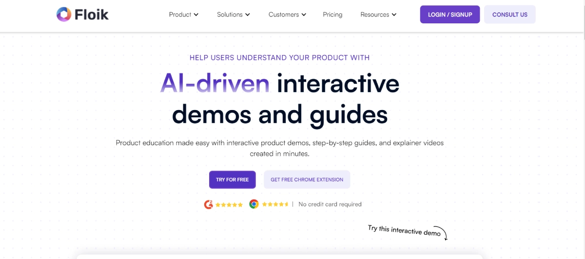 PaidFloik is a versatile platform enabling users to effortlessly produce interactive product demos, step-by-step guides, and explainer videos without the need for coding or video editing skills. With features like screen recording, AI voiceovers, blurring, trimming, and customization tools, Floik caters to a wide range of roles and purposes. Whether you're showcasing a new product, creating instructional content, or explaining concepts, Floik simplifies the process. This tool eliminates the complexity typically associated with video creation, allowing you to focus on delivering engaging and informative content. By streamlining the creation of interactive materials, Floik empowers users to effectively communicate ideas and instructions without the hassle of technical barriers.