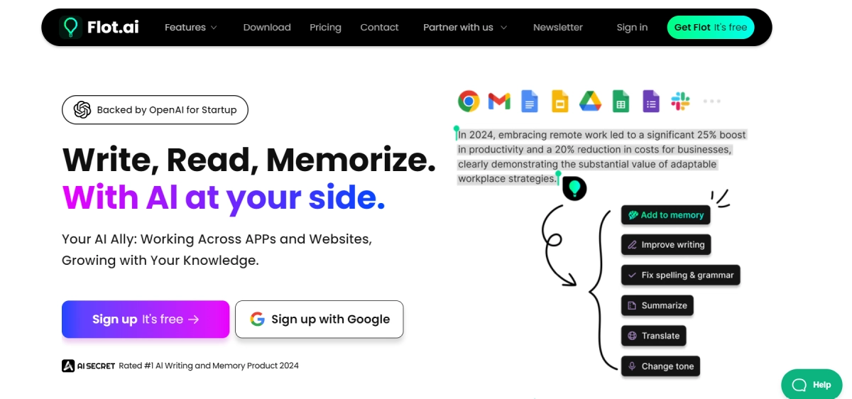 PaidFlot AI is a productivity tool that easily integrates into your daily workflow. It helps with writing, reading, and memorization tasks on different apps and websites, making it a versatile tool for professionals, students, and anyone looking to enhance their writing and organizational skills. Flot AI offers various pricing plans to cater to different needs.