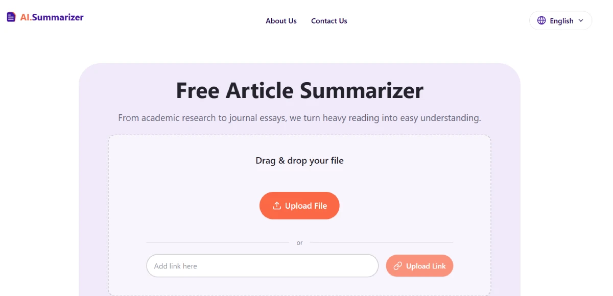 Free Plan: The summarization service is available at no cost. Users can use the tool by uploading files or pasting links without registration or payment. No subscription plans or premium tiers are currently featured on the homepage. Enjoy the convenience of summarizing content hassle-free with this free offering.