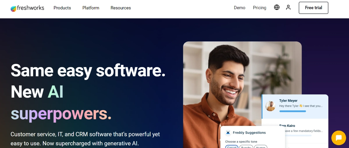 PaidFreshWorks is a suite of software solutions for customer service, IT, and CRM. It simplifies business operations, boosts productivity, and enhances customer satisfaction. FreshWorks integrates advanced AI, including generative AI with Freddy Copilot, to make work faster, easier, and more human. This platform is ideal for businesses looking for powerful yet user-friendly software to improve customer relationships and energize employees. It offers these benefits without the complexity and high costs associated with traditional business software.
