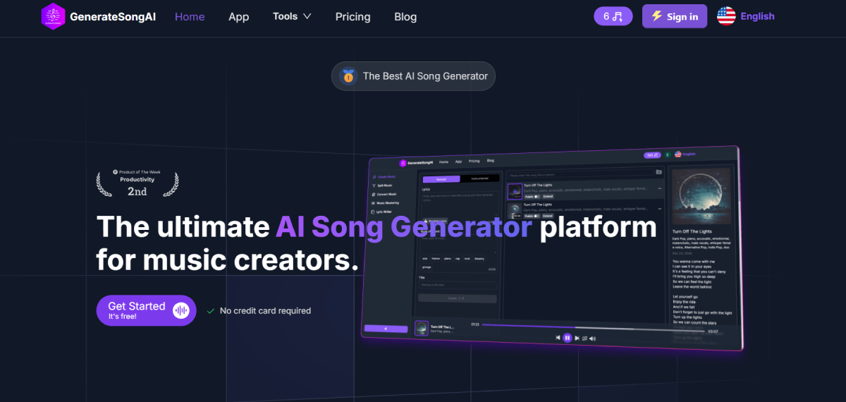 PaidGenerate Song AI allows you to effortlessly create high-quality songs using artificial intelligence. This tool transforms text prompts, lyrics, or voice recordings into full music tracks spanning different genres. Whether you're a novice or an experienced music producer, Generate Song AI simplifies the music-making process with its user-friendly features. Plus, it provides royalty-free outputs, making it convenient for various projects.
