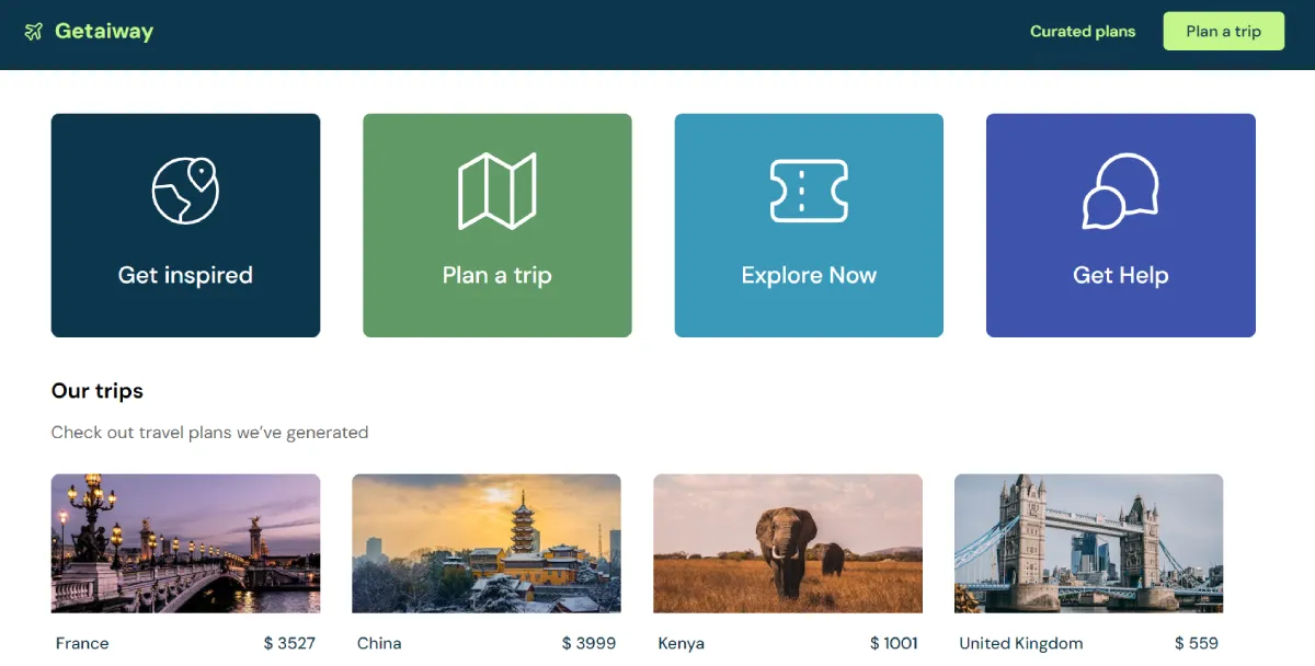 FreeGetAIway is an AI-powered travel tool that creates personalized trip itineraries based on your preferences. By simply describing your ideal trip, the AI suggests activities, accommodations, and transportation options tailored to your tastes. The platform's models are trained on vast amounts of data, ensuring that the generated itineraries cater to your unique interests, whether you enjoy hiking, food tours, museums, beaches, or surprises. GetAIway offers endless destination possibilities, from popular hotspots to hidden gems, solo or group travel, across any country or city. Users actively shape the AI's trip plans by providing feedback on recommendations, allowing for deeply personalized travel experiences. GetAIway is revolutionizing personalized travel planning by leveraging AI technology to create tailored trips effortlessly.