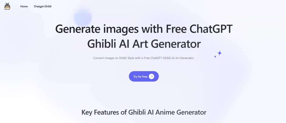 FreeGhibli AI: Free ChatGPT Ghibli Art Generator is an online tool that transforms text prompts and images into Studio Ghibli-style artwork. This AI-powered image generator instantly applies the iconic Ghibli aesthetic to any input, creating whimsical anime-style visuals. Users can either describe their vision in text or upload an image to generate nostalgic and enchanting artwork. Ideal for artists, content creators, and anime enthusiasts, this tool provides a quick and easy way to bring Ghibli-inspired art to life. Whether you're looking to add a touch of magic to your projects or simply enjoy the charm of Studio Ghibli's style, this tool offers a fun and creative experience for all users.