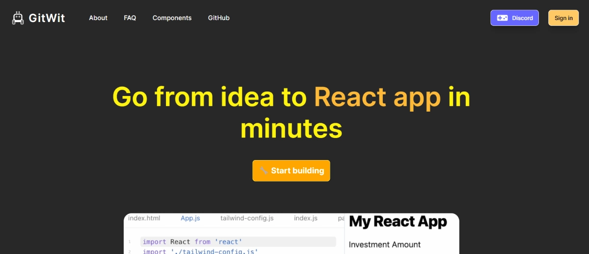 PaidGitWit is a web development tool that enables users to create applications swiftly, regardless of their coding proficiency. By supporting technologies such as React, Tailwind, and NodeJS, GitWit streamlines the coding process, allowing users to launch their app's initial version within minutes. This tool is beneficial for beginners seeking to learn coding and experienced developers aiming to enhance their productivity. GitWit's focus on efficiency and ease of use makes it an ideal choice for anyone looking to expedite web application development.