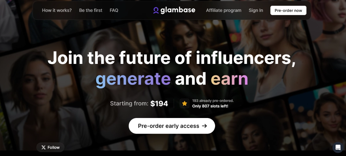 PaidGlambase is a platform that creates AI influencers with customizable physical features and personalities. Users can generate posts, images, and videos using its tools and monetize these AI personas by interacting with followers and selling exclusive content. It's designed for content creators, marketers, and anyone looking to use AI to establish a digital presence. Glambase operates on a tiered pricing model starting at $439, which increases with each sale. Early access allows users to lock in lower rates and enjoy benefits like lifetime fee reductions, private community access, and priority feature trials.