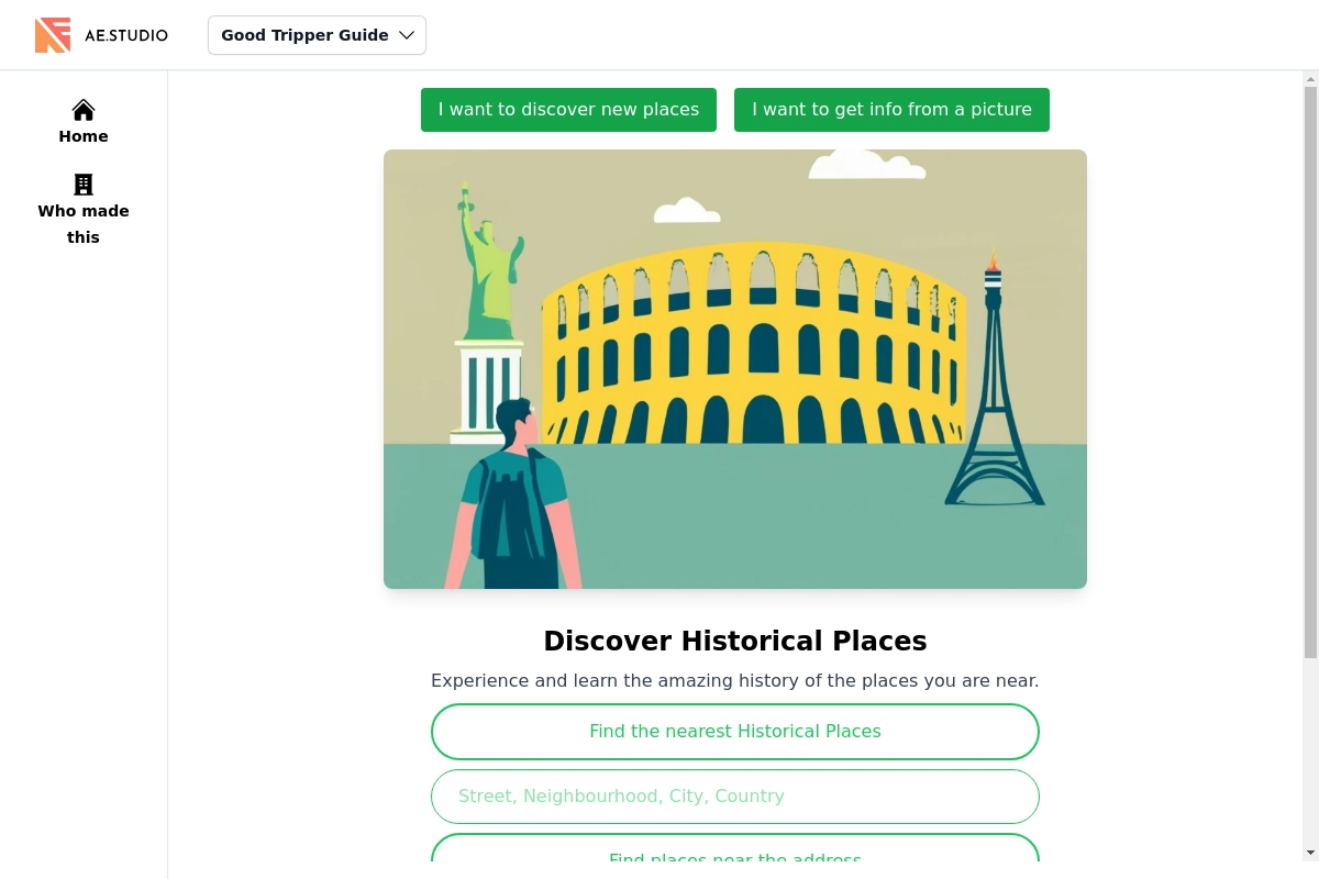 FreeGood Tripper Guide is an app designed to help users easily explore historical and cultural sites in their vicinity. By entering an address, the app suggests interesting local spots to visit. One of its key features is the ability to use your phone's camera to get instant background information on landmarks or artifacts. This in-situ education enhances your exploration experience. The app offers a user-friendly interface for seamless discovery, whether you're planning ahead or already on-site. Good Tripper Guide aims to enrich your travel experiences by providing location-based recommendations and real-time visual identification of hidden gems and local secrets. Overall, it's a tool that opens your eyes to the history and culture surrounding you, making every trip more enlightening and engaging.