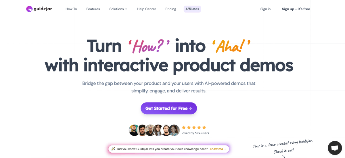 PaidGuidejar is a platform that empowers businesses to effortlessly create interactive product demos, step-by-step guides, and knowledge bases. Using AI-powered tools, Guidejar simplifies user onboarding, customer education, and process streamlining. This tool enhances engagement and boosts productivity by providing a user-friendly way to educate customers and employees. With Guidejar, businesses can efficiently communicate complex information, making it easier for users to understand products and services. Whether you need to onboard new users or provide ongoing support, Guidejar offers a solution that helps businesses save time and resources while improving user experience.