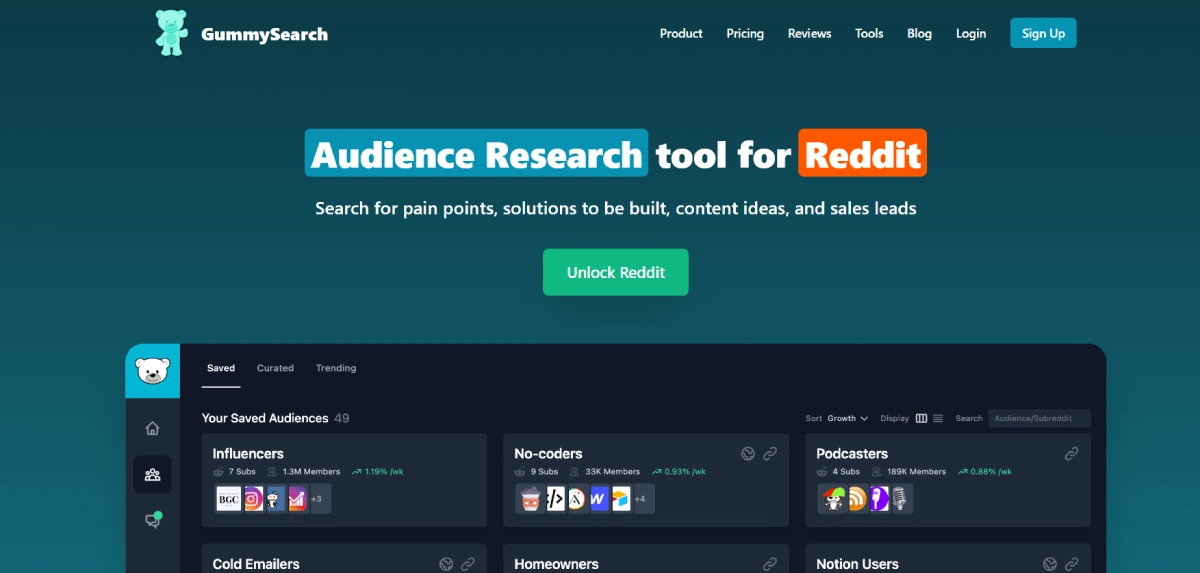 PaidGummySearch is a tool that simplifies audience research on Reddit by helping users quickly pinpoint relevant conversations, pain points, and emerging trends across various communities. It is beneficial for startups, market researchers, and content creators seeking to connect with target audiences, generate new business ideas, and validate solutions through real conversations. GummySearch eliminates the need for endless scrolling by presenting high-value discussions, enabling users to identify unmet needs, track competitor mentions, and address customer concerns directly.