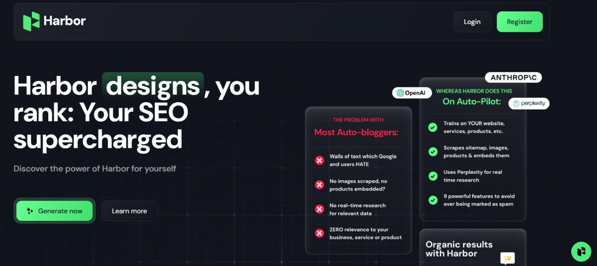 PaidHarbor SEO AI empowers businesses, agencies, and individuals to enhance their content's visibility on search engines. This comprehensive SEO suite enables users to generate SEO-optimized content, conduct contextual keyword research, and build relevant links. By leveraging context-aware strategies, Harbor AI helps improve website rankings through data-driven content creation and SEO tactics. Key features include automated content generation, intelligent link-building tools, and advanced data visualization for effective SEO enhancement. Whether you're focusing on keyword research or improving user experience, Harbor offers a range of tools to boost search visibility and drive results.