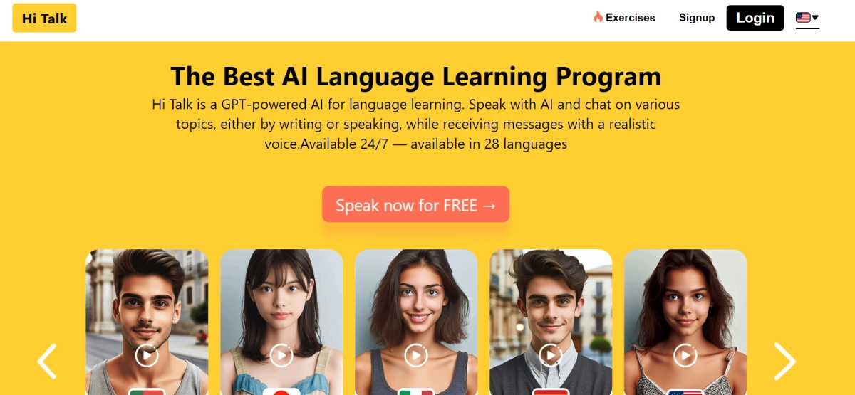PaidHi Talk AI allows you to practice speaking in 28 different languages using AI tutors. You can chat or speak with these tutors on various topics, and they will respond with realistic voices. This language learning program provides a platform for improving your language skills through interactive conversations with AI tutors.