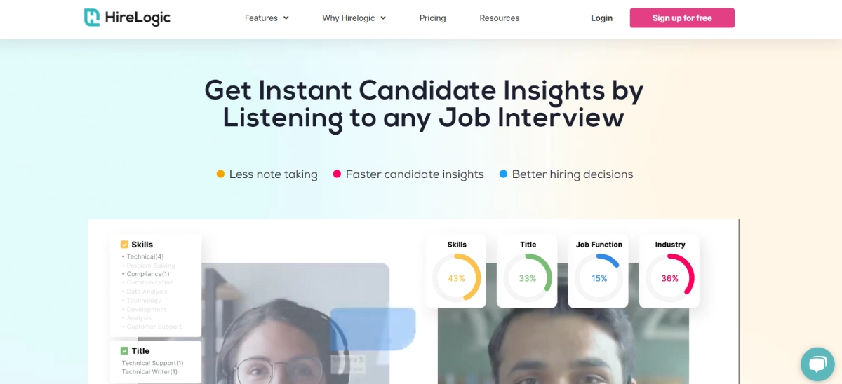 PaidHireLogic is a recruiting software that uses AI to analyze job interviews swiftly, offering immediate candidate insights for enhanced hiring choices. By automatically transcribing calls, meetings, and face-to-face interviews, it extracts essential topics, skills, and experience details from the discussions. This streamlines note-taking and accelerates candidate evaluations. With a free trial available, paid plans start at $65 monthly for fundamental features and advanced analytics. Custom pricing is an option for enterprise needs. HireLogic optimizes recruiters' time by automating note-taking and providing instant AI-driven candidate insights from interview dialogues. By extracting crucial discussion points and skills, it expedites candidate assessments, facilitating quicker hiring decisions. Ideal for recruiting teams seeking to enhance interviews with AI analytics, HireLogic offers the efficiency required to secure top talent promptly.