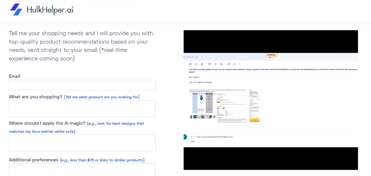PaidHulk Helper AI is an AI tool that assists users in finding personalized product recommendations quickly and efficiently. By understanding your preferences, it narrows down choices to offer suggestions that match your criteria. You can communicate your needs to Hulk Helper AI via email, detailing the desired product, search focus, and any constraints. Currently email-based, it will soon introduce a real-time experience for enhanced user interaction.