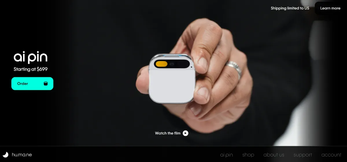 PaidHu.ma.ne AI Pin is a screenless wearable device that offers an alternative to smartphone usage. Developed by former Apple employees, it enables users to interact through hand gestures, voice commands, and audio feedback. The device features a laser projector that displays images and text onto the user's palm, controlled by intuitive finger and hand motions. With advanced voice control powered by OpenAI models, users can perform tasks like checking calendars or dictating messages. The AI Pin also offers features like automatic notification summaries, real-time translation, and visual recognition capabilities. Privacy is a priority, with manual activation and directional speakers for private conversations. This innovative gadget aims to provide a more mindful approach to mobile technology, offering convenience without the distractions of traditional smartphones.