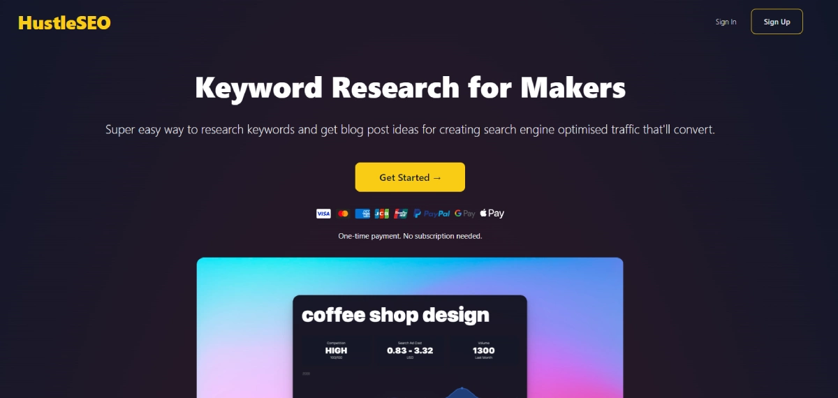 PaidHustle SEO is a user-friendly keyword research tool tailored for makers, bootstrappers, and growing businesses. It streamlines the process of uncovering relevant keywords and creating content ideas to attract specific traffic to your website. With its intuitive interface and reliable features, Hustle SEO simplifies the task of optimizing your online presence for search engines. Whether you're looking to boost visibility or enhance your SEO strategy, this tool offers three one-time payment plans to cater to various needs. By using Hustle SEO, you can efficiently identify the right keywords and generate compelling content that drives organic traffic to your site, helping you reach your target audience effectively.